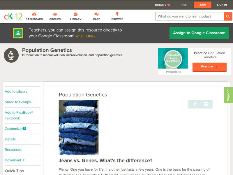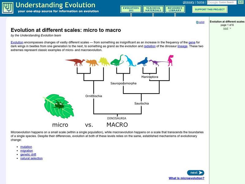 [Free Registration/Login may be required to access all resource tools.] Introduction to macroevolution, microevolution, and population genetics.