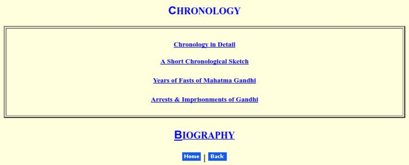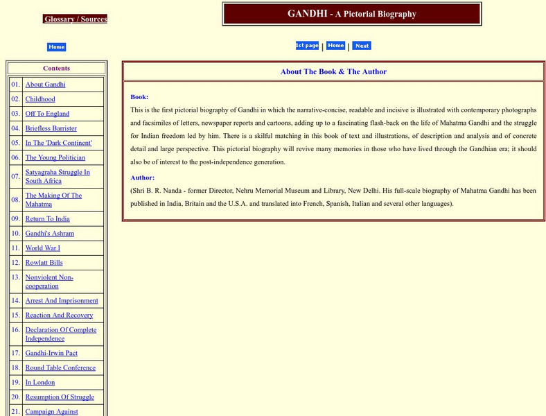 A very rich site devoted to Mohandas Gandhi. It includes extensive biographical information, his philosophy, many photos, articles and essays. There are tributes, reminiscences, speeches, prayers, his family tree, and much much more.