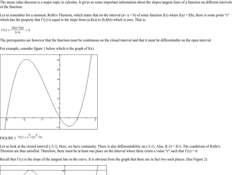 This site provides an explanation as well as formulas and examples of the mean value theorem.