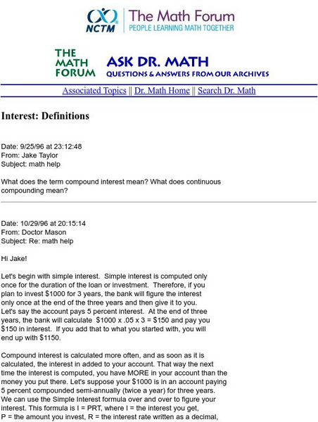 The Math Forum: Ask Dr. Math: Interest: Definitions