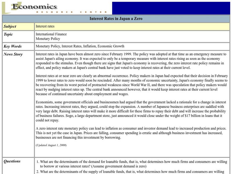 South Western Learning: Econ News: Interest Rates in Japan a Zero