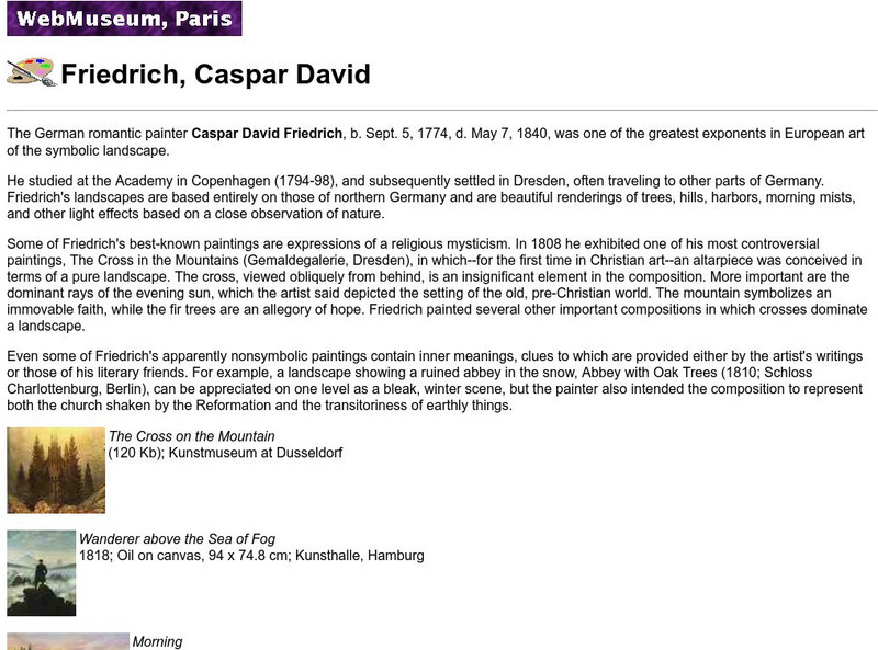 Biography of German Romantic painter Caspar Friedrich, including pictures of some of his paintings.