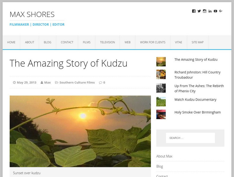 This website highlights some of the main points from a documentary on Kudzu. It includes history, attempts to control, and other uses for the invasive species. There are lots of links to other sites that provide more information.