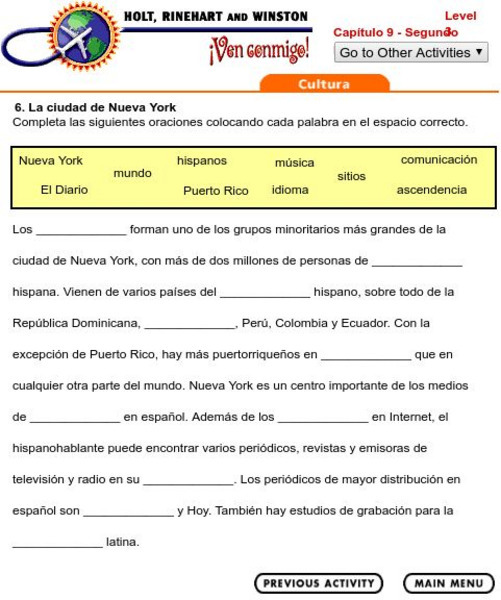 Holt, Rinehart and Winston: Ven Conmigo! La Ciudad De Nueva York, Cultura, Capitulo 9