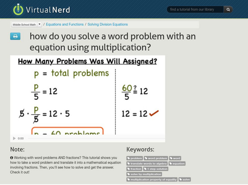 Virtual Nerd: How Do You Solve a Word Problem With an Equation