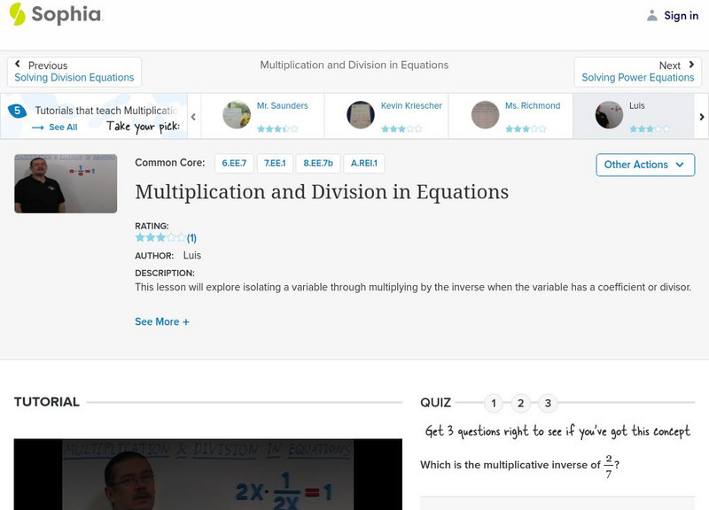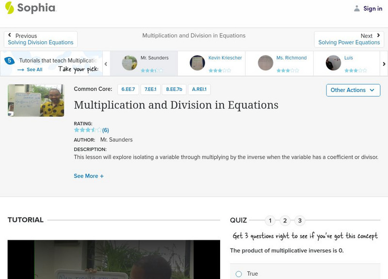 Sophia: Multiplication and Division in Equations: Lesson 2
