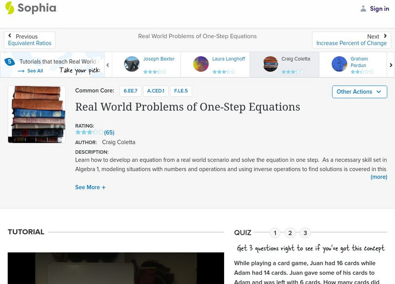 Students watch a video lesson that presents a real-world example of using a one-step equation to solve a problem.