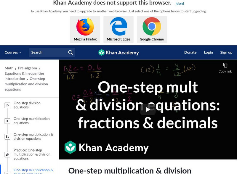 Khan Academy: 1 Step Multiplication/division Equations: Fractions & Decimals
