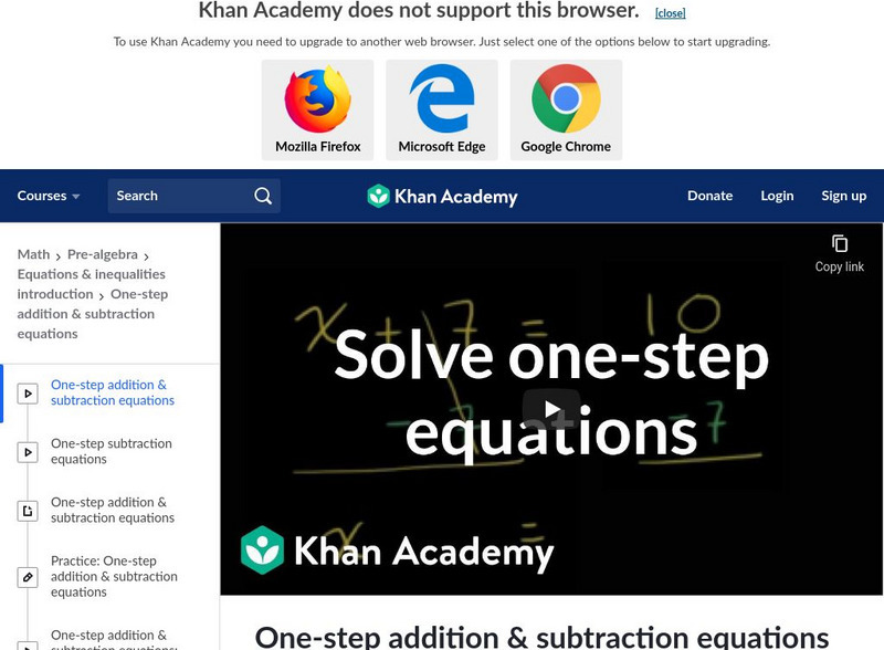 Khan Academy: Equation Examples for Beginners: Solving One Step Equations