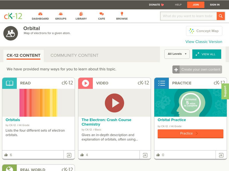 [Free Registration/Login may be required to access all resource tools.] A collection of learning opportunities about electron orbitals. Includes videos, activities, discussion questions, and quizzes.