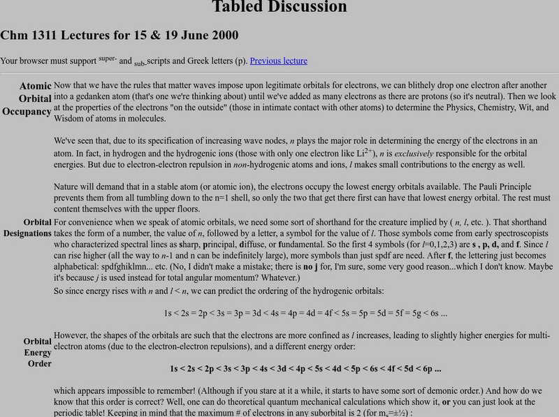 At this University of Texas site, atomic orbital occupancy, quantum numbers, the Aufbau Principle, and periodic trends are described in detail.