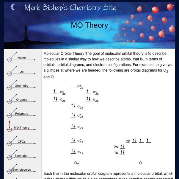 Very deep presentation of molecular bonding and orbital theory. Nice graphics and text make it a good presentation of some high end material.