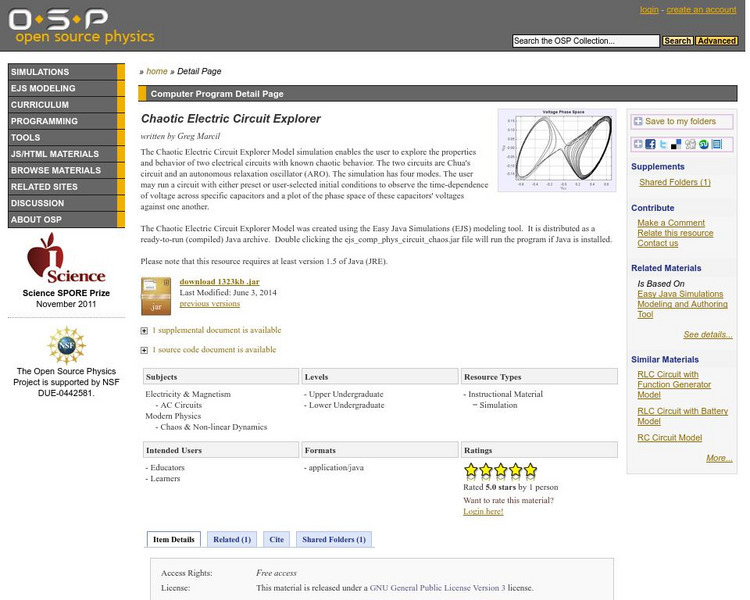Com Padre Digital Library: Open Source Physics: Chaotic Electric Circuit Explorer