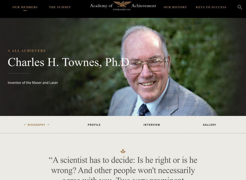 Biography of Charles Townes who is credited for discovering microwave and laser technology from which came digital storage transforming our world.