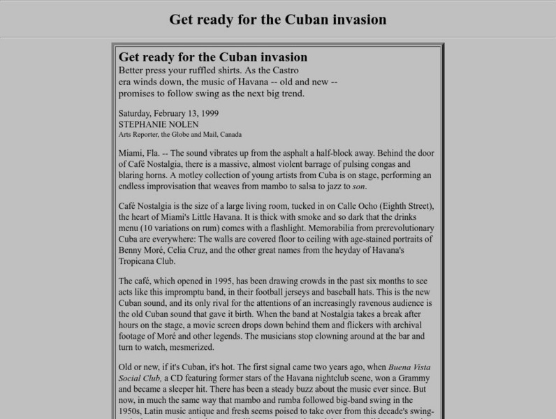 A newspaper article describing the 'invasion' of the United States by Latino music.