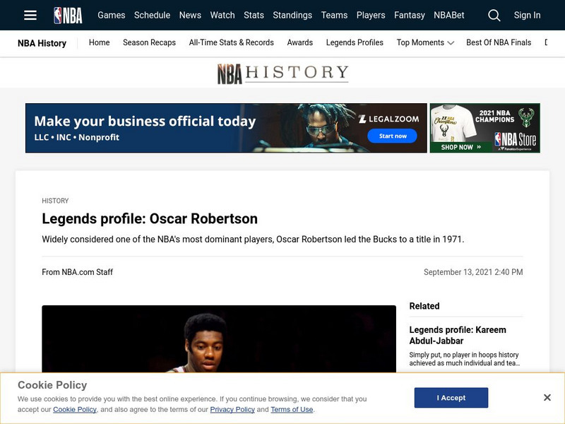 This site, from the NBA, offers a thorough profile of the life and career of former NBA Great Oscar Robertson, with links to other resource sites and information.