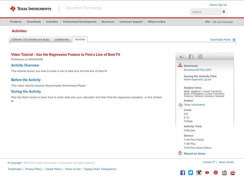 Texas Instruments: Use the Regression Feature to Find a Line of Best Fit
