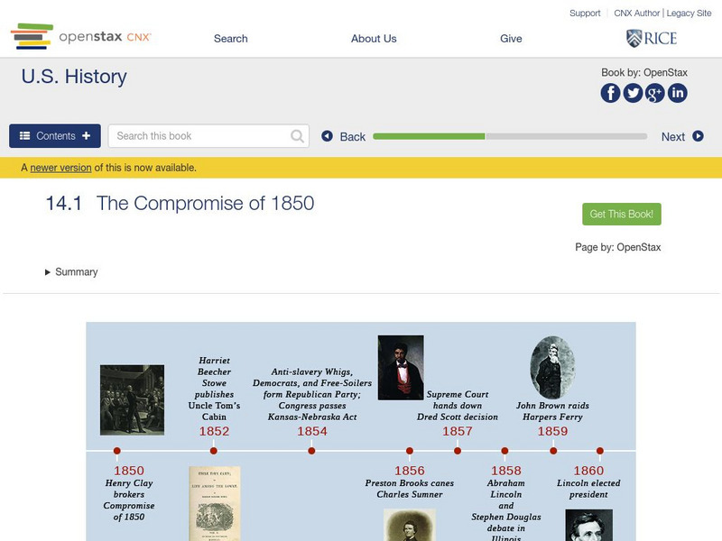 From a chapter on " Troubled Times: the Tumultuous 1850s," this section explains the contested issues that led to the Compromise of 1850 and describes and analyzes the reactions to the 1850 Fugitive Slave Act.