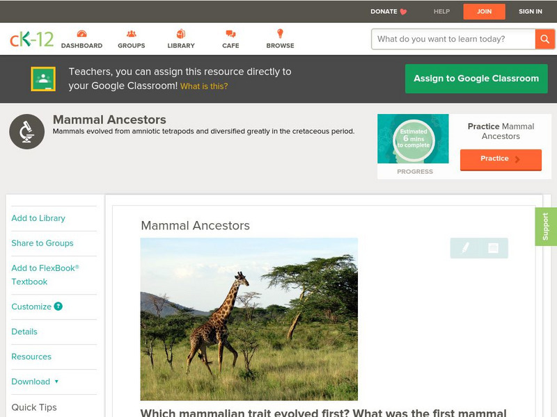 [Free Registration/Login may be required to access all resource tools.] Discusses therapsid ancestors of mammals.