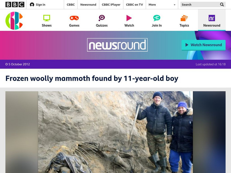 Bbc Newsround: Frozen Woolly Mammoth Found by 11 Year Old Boy