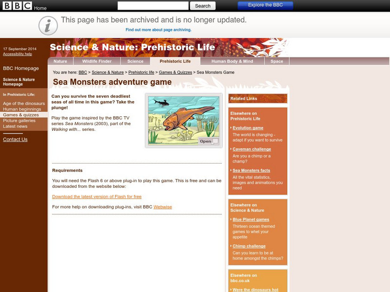 Bbc: Science and Nature: Prehistoric Life: Sea Monsters Adventure Game