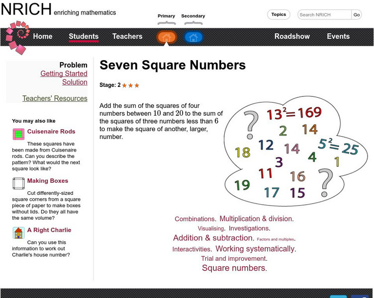 On this one page website sharpen your logic, prime numbers and square numbers skills while working on this challenge. The solution is available to double check your solution.