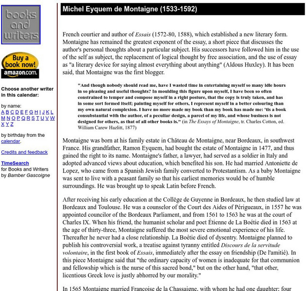 An excellent and thorough biography and exploration into Montaigne's works, career, and philosophy.