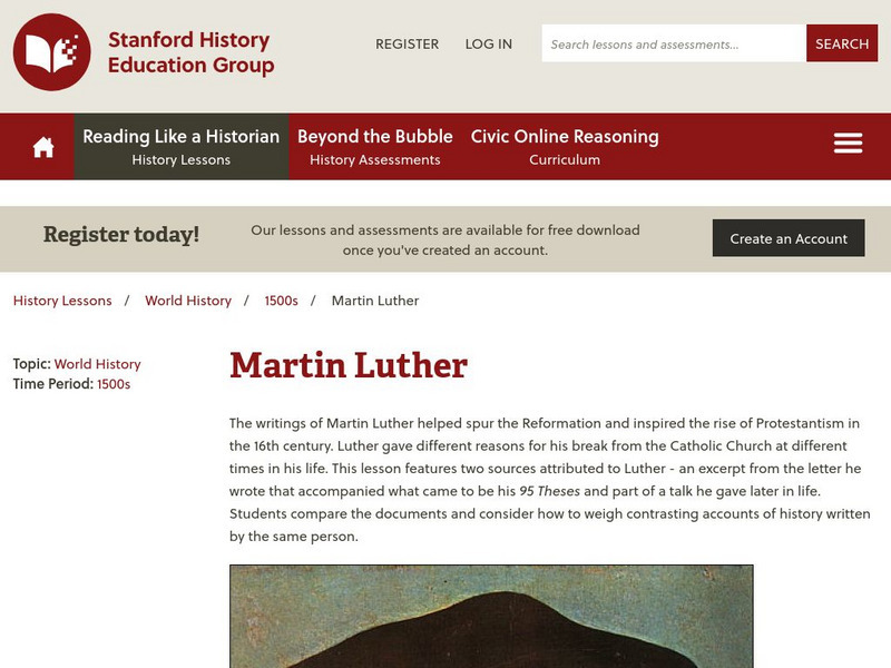 [Free Registration/Login Required] How do you consider contrasting stories by the same author? This lesson and supporting resources help students do just that when studying about Martin Luther breaking from the Catholic Church.