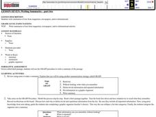 Practice summary writing with informational texts. Young readers create summaries after reading magazine articles, newspaper articles, or other forms of informational texts. Readers use the GRASP strategy (read text, write what you...