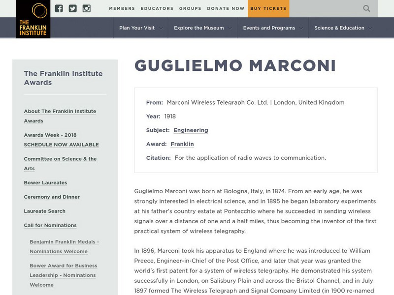 Franklin Institute Online: Guglielmo Marconi