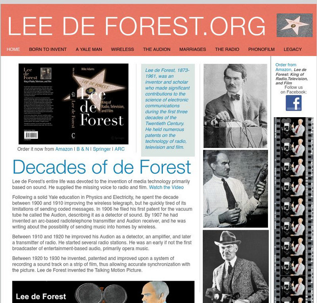 An extensive site covering all aspects of Lee de Forest, his inventions, writings, and personal life. Find drawings and pictures of his audion tube and find out about his legacy, especially in the world of electronics.