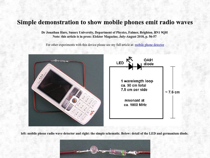 Described is a simple low cost home-made device that converts the radio wave energy from a mobile phone signal into electricity to light an LED. No battery or complex circuitry is required. The device can form the basis of a range of...