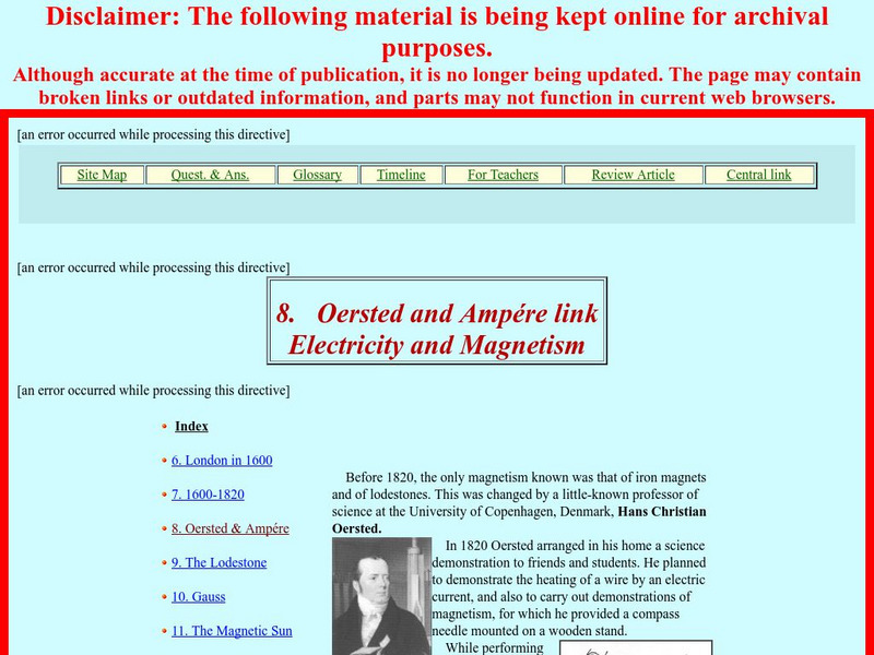 NASA provides a nice blending of the achievements of three scientists, Oersted, Ampere, and Maxwell. This done by NASA-sponsored International Solar-Terrestrial Physics group. Lots of pictures, diagrams, and scientific explanation. Good...