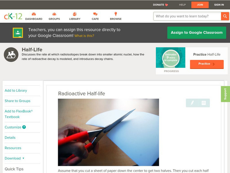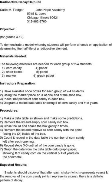 [Free Registration/Login may be required to access all resource tools.] The half-life of a radioisotope, rates of radioactive decay and variation in half-lives in different radioisotopes.