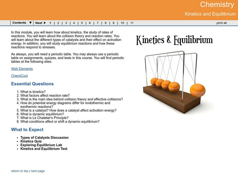 Through informational text, interactive practice problems, virtual simulations, and video clips, students learn about reaction rates and equilibrium.
