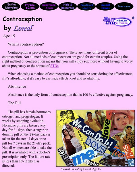 A project by an adolescent that looks at the various forms of contraception and how they are used. Links are provided to further develop this topic.