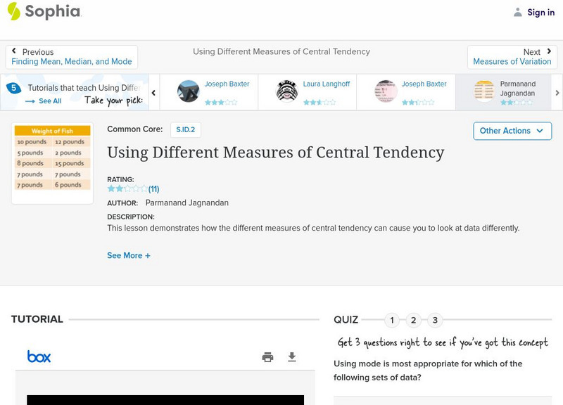 Sophia: Using Different Measures of Central Tendency: Lesson 4
