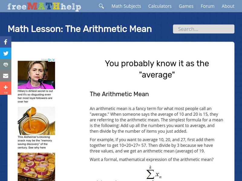 Students learn how to find the arithmetic mean of data. The tutorial consists of a definition and examples with detailed solutions.