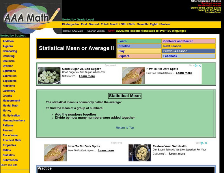 Houghton Mifflin: Eduplace: Extra Practice Quiz Mean, Median, Mode, Range 1
