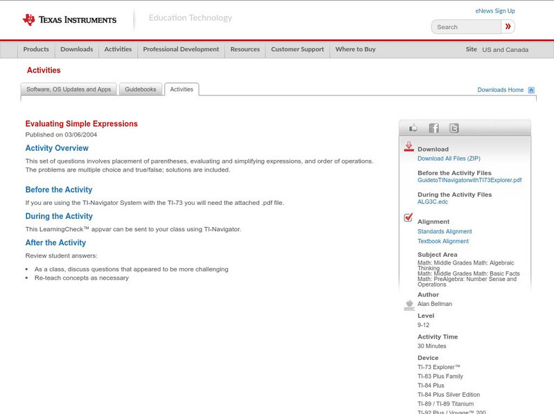 Middle schoolers will practice simplifying algebraic expressions using properties: identity, commutative, associative, and distributive. It provides downloadable PDF resources to go along with the lesson as well as an assessment plan.