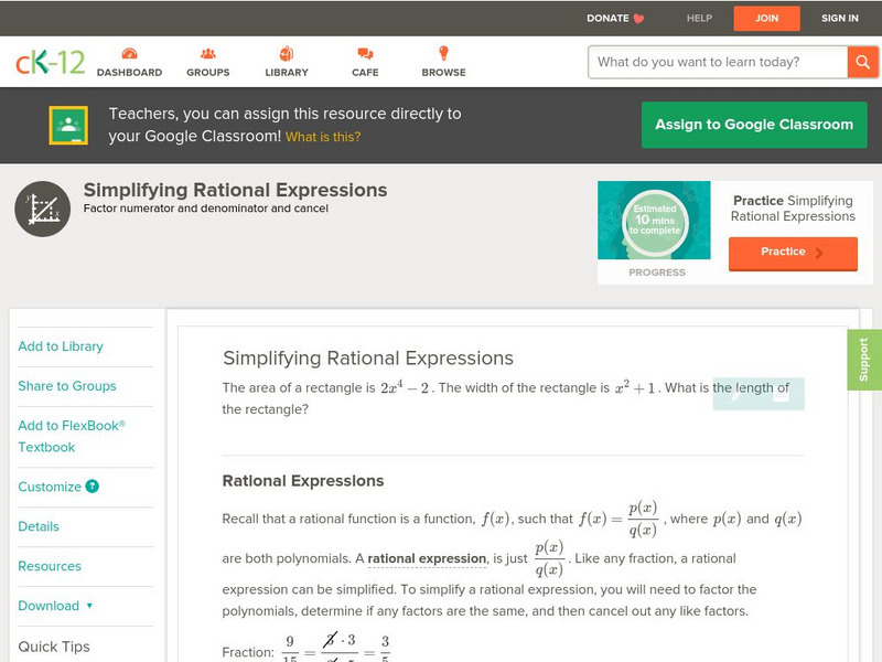 Ck 12: Algebra: Excluded Values for Rational Expressions