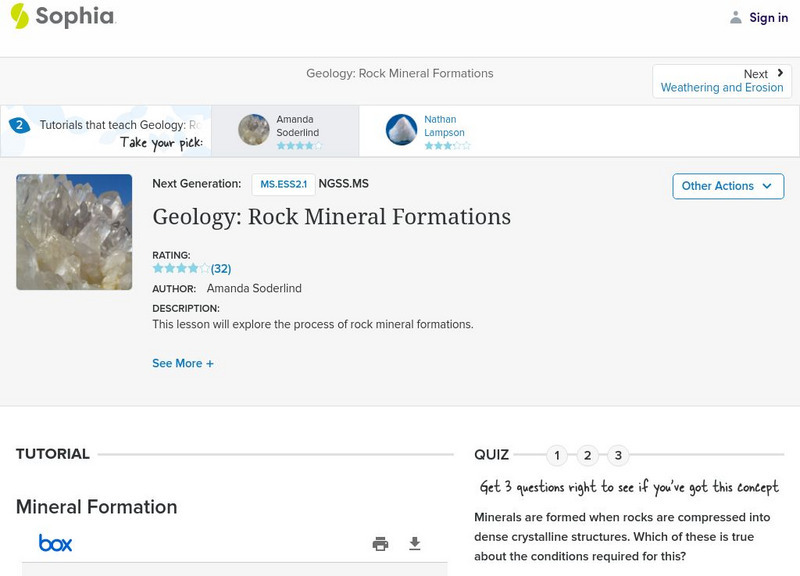 Sophia: Geology: Rock Mineral Formations: Lesson 1