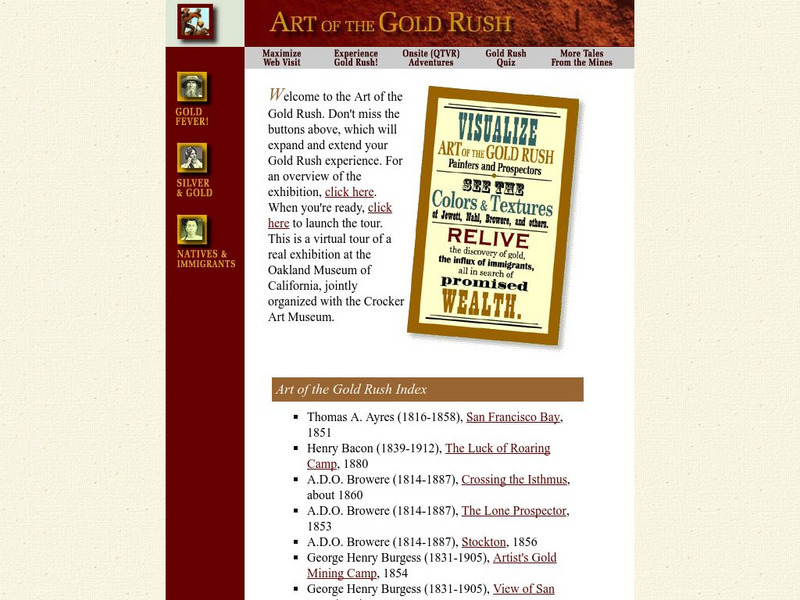 The Oakland Museum presents an exhibit of art that show the miners, mining towns, new cities, and people of the Gold Rush. Be sure to read the overview of the exhibit to get the historical background.