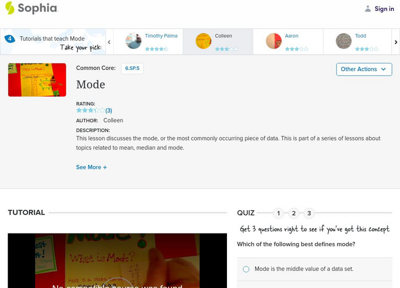 Sophia: Finding Mean, Median, and Mode: Lesson 4