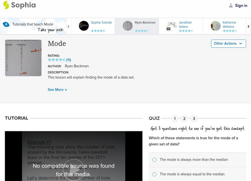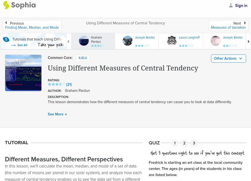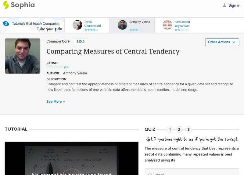 Sophia: Comparing Measures of Central Tendency: Lesson 2