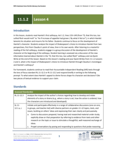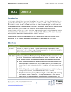Using the resource, scholars read Act 3.3 of Shakespeare's Hamlet. They analyze two soliloquies and discuss how Shakespeare develops the characters.