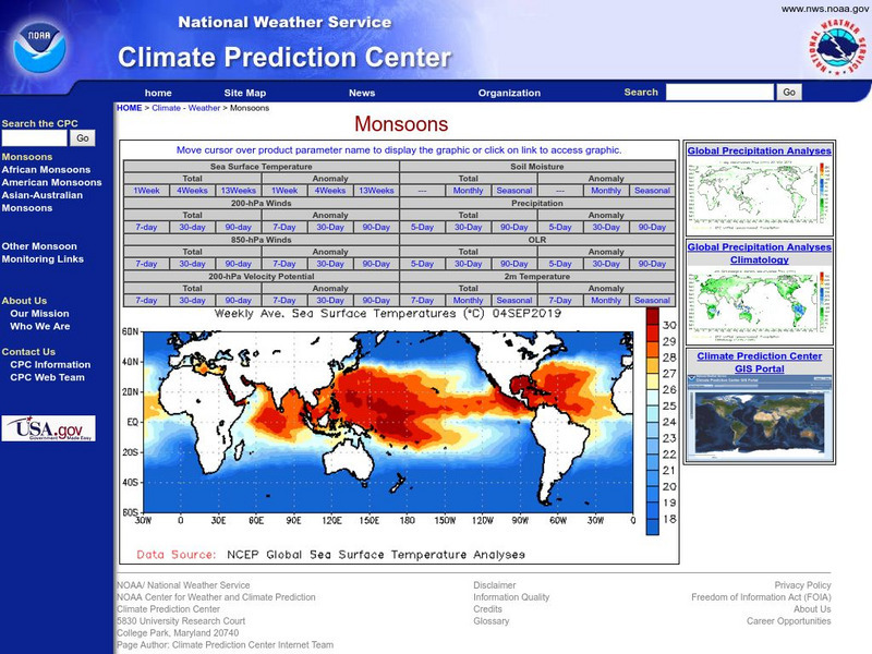 This interactive world map allows you to view factors associated with monsoons. Monsoon data displayed includes factors such as precipitation, wind speed, soil moisture, and ocean temperatures. Links to monsoons associated with specific...