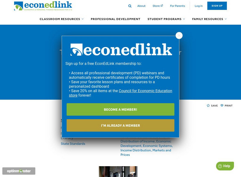 This lesson addresses the distribution of income. Some believe that income distribution is becoming more unequal. This lesson explores that question. The site includes links to articles and questions.