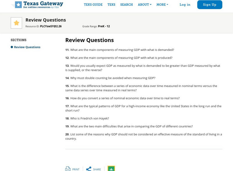 Texas Gateway: Chapter 5: Macroeconomic Perspective: Review Questions