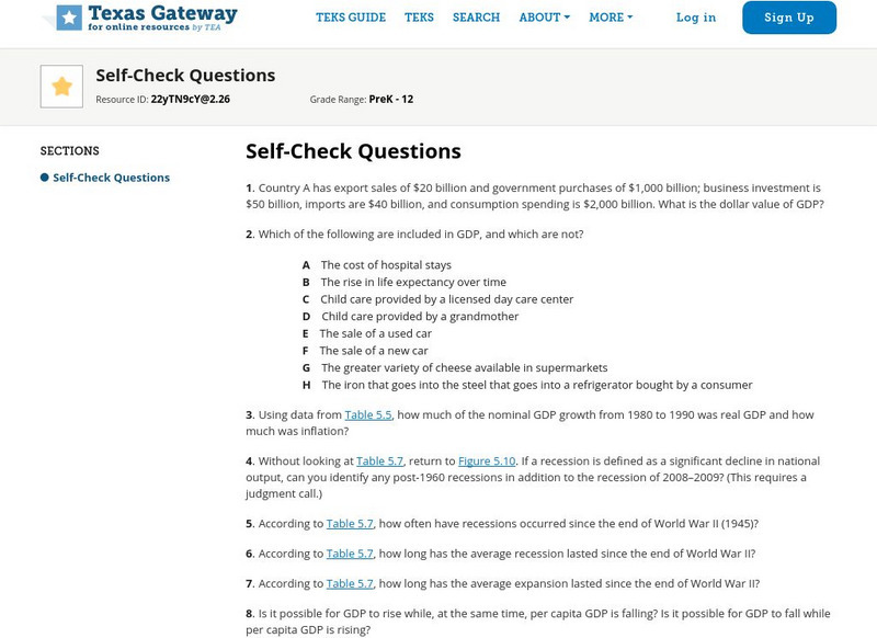Texas Gateway: Chapter 5: How Well Gdp Measures the Well Being of Society